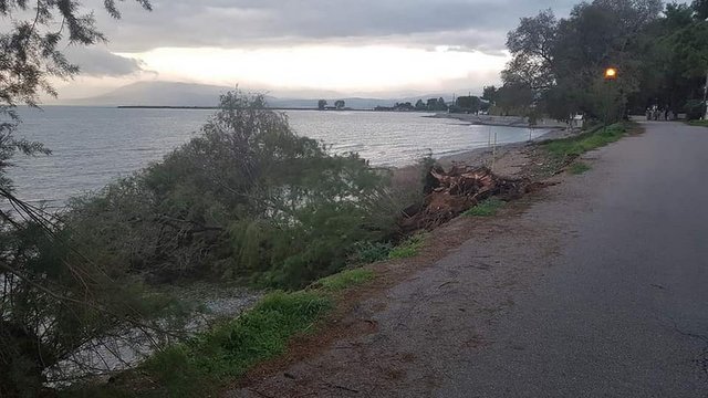 Ο δυνατός αέρας, σε συνδυασμό με την διάβρωση του εδάφους από την θάλασσα, είχε ως αποτέλεσμα να ξεριζωθεί το αλμυρίκι το βράδυ της Δευτέρας 17 Δεκεμβρίου.